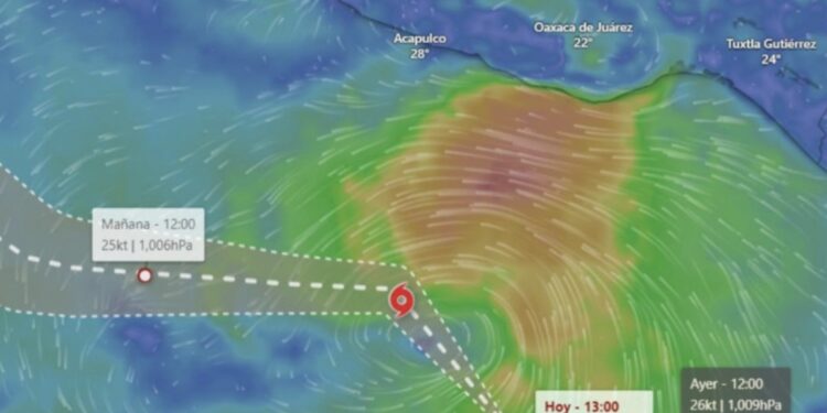 Esta mañana, el SMN informó que vigila una zona de baja presión asociada con la onda tropical número 22, que mantiene 90% su probabilidad para desarrollo ciclónico en 48 horas y en 7 días, es decir, es prácticamente un hecho que se forme. Este miércoles, el sistema se localiza a 530 kilómetros al sur-suroeste de Acapulco, Guerrero, y se desplaza hacia al oeste-noroeste a 14 km/h.