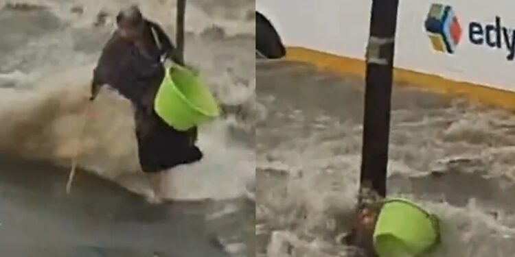 Sin embargo, la determinación de esta valiente abuelita no se quiebra. La cubeta verde que sostenía se convierte en su tabla de salvación, ayudándola a mantenerse a flote y evitando un destino trágico de ahogamiento.