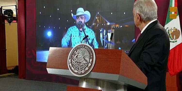 El anuncio lo dio en su conferencia de prensa de éste miércoles 23 de agosto, y luego de eso pidió reproducir la canción ‘No se va’, que ha sido el éxito más grande de la agrupación de música norteña.