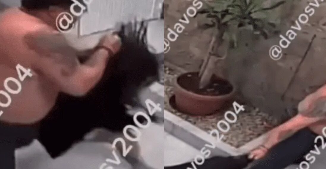 Captan a hombre jalando a mujer del cabello y golpeándola con escoba