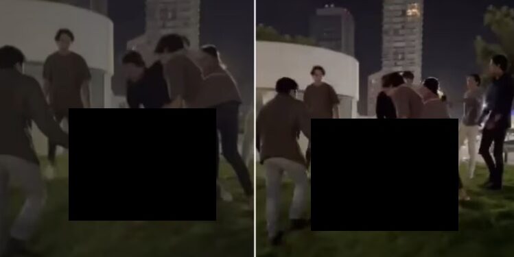 México.-A su salida de un establecimiento en Puebla, dos jóvenes fueron mojados con cerveza por un grupo de ocho hombres, quienes respondieron con brutal violencia cuando fueron confrontados por esta acción.