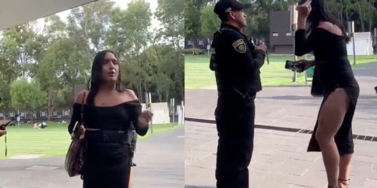 La discusión fue captada en video, y en él se aprecia a la mujer trans, con vestido negro, encarando a uno de los uniformados, quien insistió que se retirara.