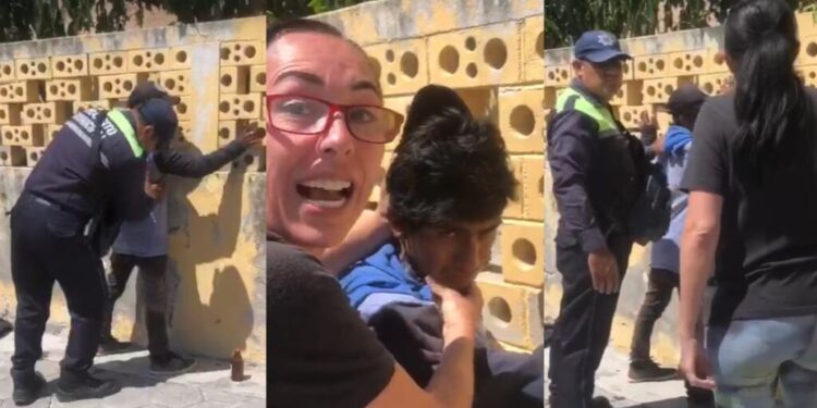 Testigos refieren que el hombre se encontraba en supuesto estado de ebriedad, incluso, en la grabación se logra ver que porta una botella de cerveza que, al ser detenido, la puso en la banqueta.