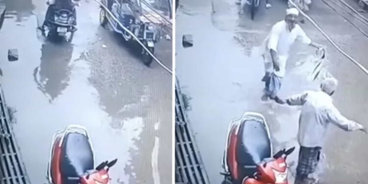 India.-Una niña fue alcanzada por un cable de electricidad mientras iba caminando por la calle al pasar por un charco de agua en la ciudad de Benarés, India, por lo que quedó varios segundos sobre el suelo bocabajo sin poderse mover, sin embargo, unas personas que pasaban por ahí consiguieron salvarle la vida.