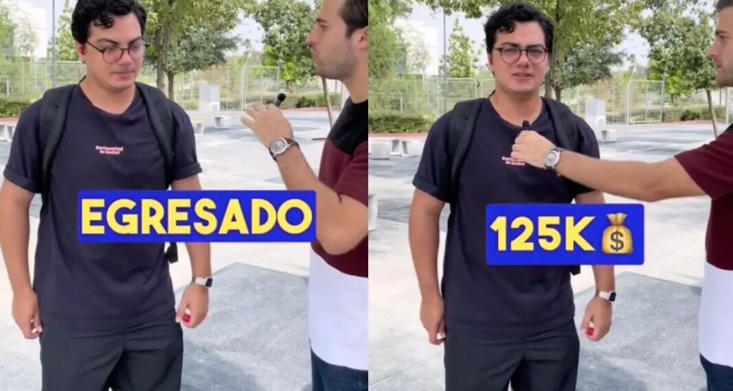 “¿Cuánto te gustaría estar ganando de recién egresado al mes?”, preguntó el tiktoker, a lo que el joven respondió sin pensarla tanto “unos 125 mil”.