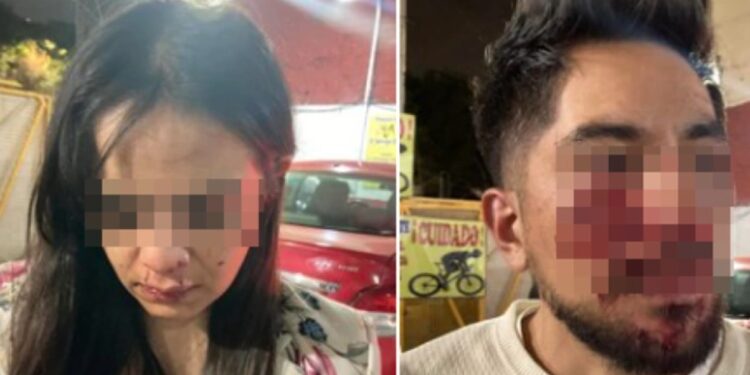 En videos que circulan en redes sociales se aprecia que trabajadores atacaron en grupo a por lo menos dos personas, un hombre y una mujer, quienes registraron lesiones en la cara.