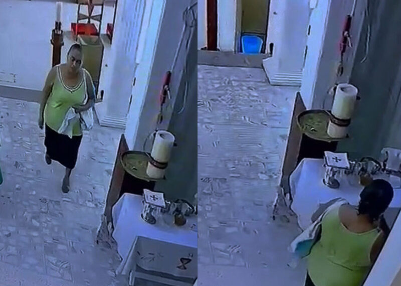 Lo cierto es que la mujer mete a su bolsa las pertenencias de la iglesia. Cada uno de los movimientos de esta mujer fueron seguidos gracias a las cámaras de vigilancia.