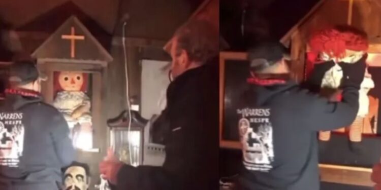 Estados Unidos.-En vísperas de Halloween, en redes sociales comenzó a circular un video que muestra a un par de hombres cambiando de lugar a la famosa muñeca Annabelle, que actualmente reside en el Museo de los Warren, una reconocida pareja de investigadores de lo paranormal.