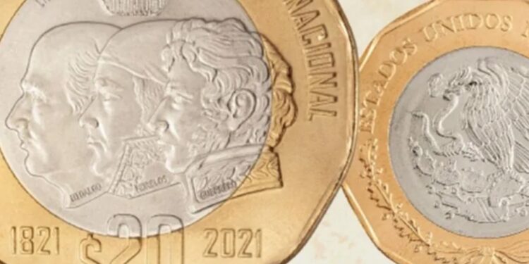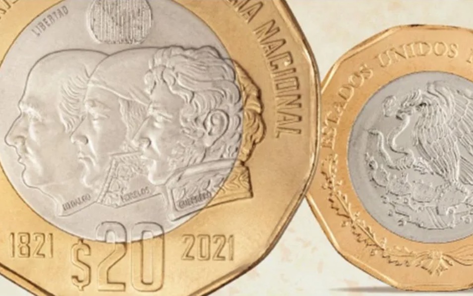 Dicha moneda presenta a Miguel Hidalgo, José María Morelos y Vicente Guerrero de perfil, mientras que en el reverso se puede leer “Bicentenario de la Independencia Nacional”.