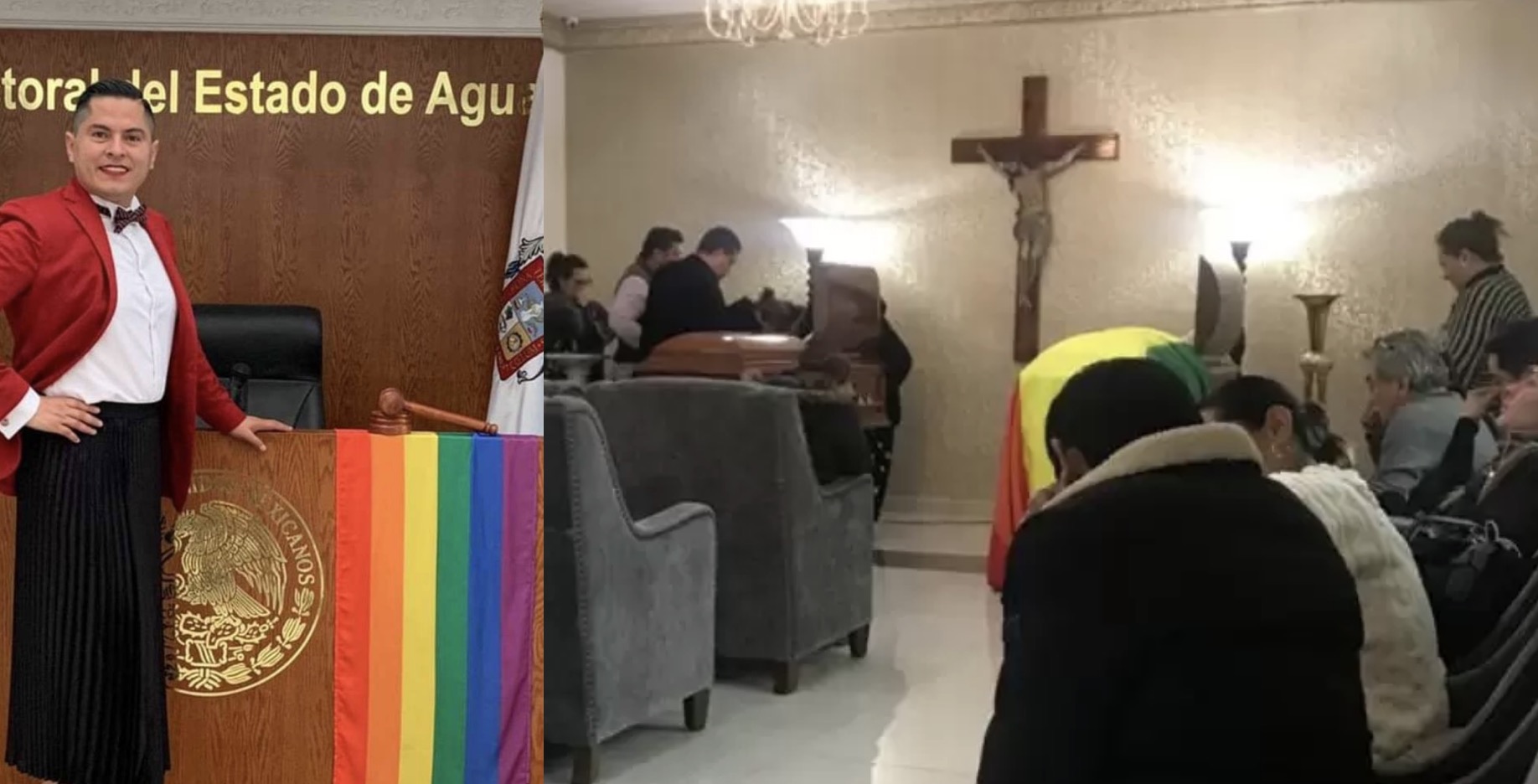 El ataúd de Dorian, a un lado del féretro de Jesús Ociel, fue parcialmente cubierto por la bandera arcoíris.