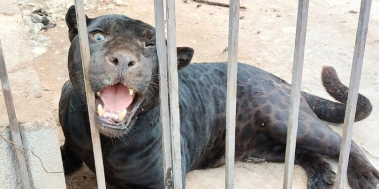 En el lugar se encontró una jaula de aproximadamente 2.5 metros por 4.5 metros de ancho y dentro de ella, se localizó un animal exótico tipo jaguar, de color negro, el cual presuntamente atacó en días pasados a una menor de edad provocándole graves daños corporales.