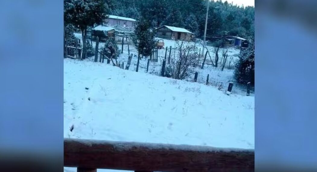 La nieve cayó durante el amanecer en zonas de Atascaderos y Pinos Altos del municipio de Guadalupe y Calvo, así como en El Vergel del municipio de Balleza.