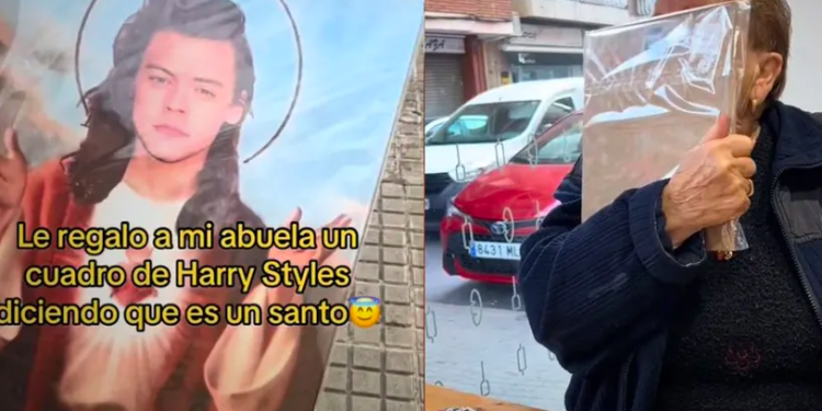 México.-En una divertida historia que se ha vuelto viral en las redes sociales, una mujer confundió al famoso cantante Harry Styles con un santo después de recibir una imagen editada del ex integrante de One Direction. El curioso evento tuvo lugar cuando una joven decidió gastarle una inocente broma a su abuela, regalándole una imagen de Harry Styles a modo de santo. La usuaria de TikTok, @juuditesteve, compartió el video de la reacción de su abuela mientras salían a comer juntos.