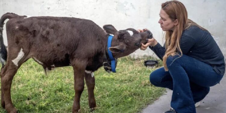 Redes.-Una mujer de Buenos Aires, Argentina, pagó 80 mil pesos (mil 718 pesos mexicanos) para salvar a un ternero de casi 90 kilos que iba a ser cocinado para la cena de Nochebuena o Año Nuevo.