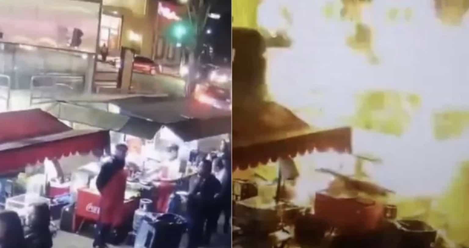 En la red social de ‘X’, antes Twitter, circula un video captado por cámaras de vigilancia de la zona, del momento exacto de la explosión del puesto de comida.
