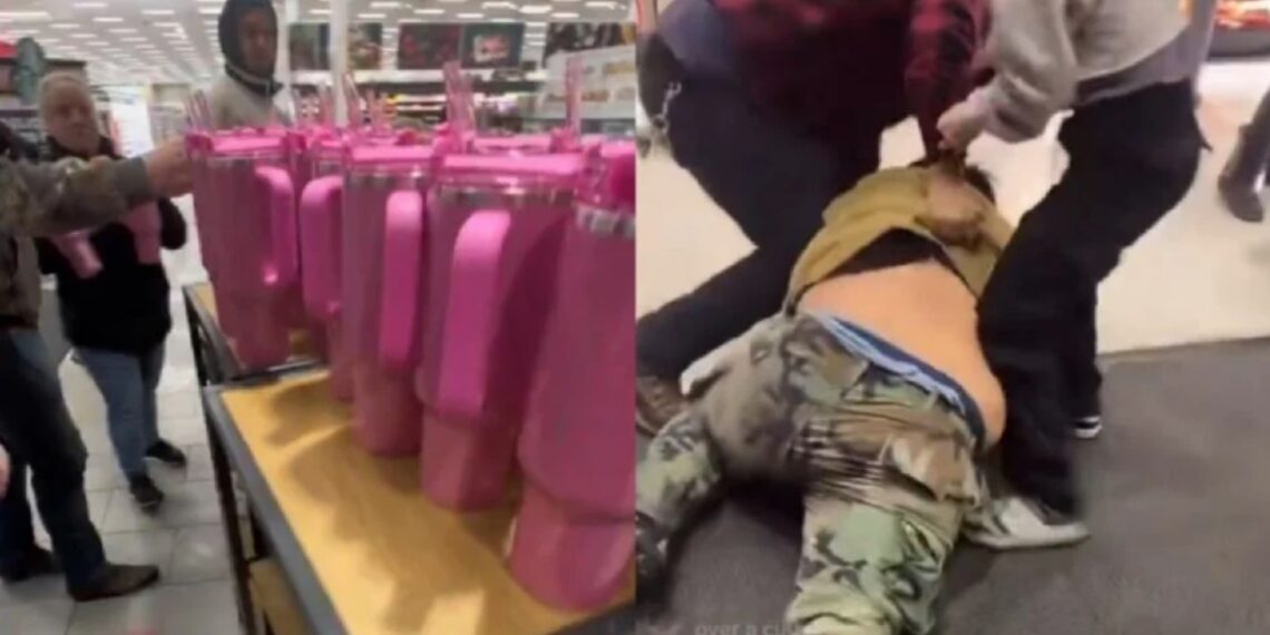En otro video compartido en plataformas digitales, se muestra a dos hombres en una pelea por un par de termos color rosa en Estados Unidos.