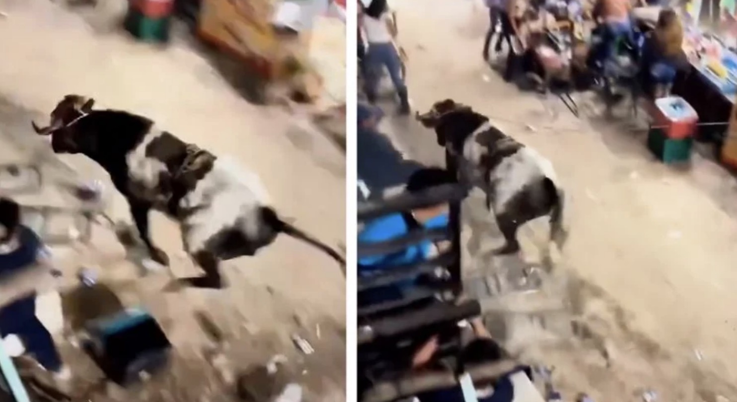En la grabación se observa cómo el animal salió a gran velocidad del ruedo, causando daños a su paso y provocando miedo entre los asistentes que buscaron ponerse a salvo.