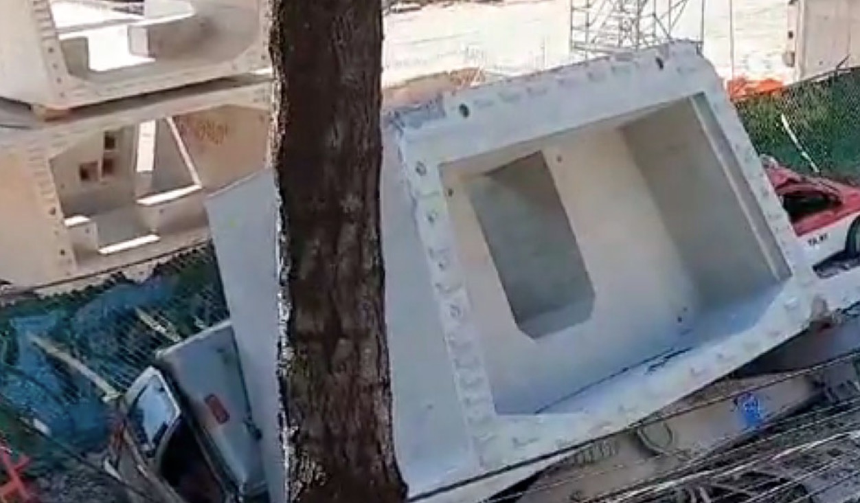 Videos difundidos en redes sociales muestran una estructura de concreto sobre la cinta asfáltica.