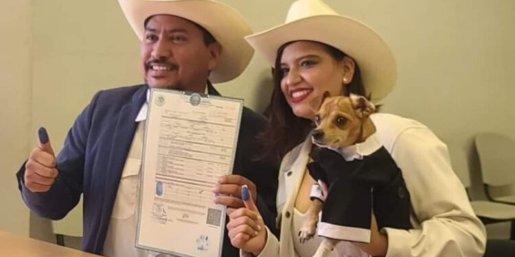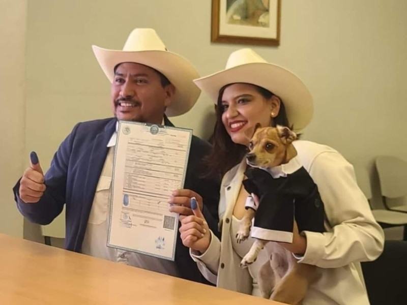 México-.Un adorable perrito chihuahua llamado Rogelio se convirtió en el centro de atención y se hizo viral en las redes sociales después de que fuera captado firmando como testigo en la boda de sus dueños, Alejandra y René Gabriel, en Sonora. El evento, que tuvo lugar ayer miércoles 17 de enero, destacó por la inclusión de este miembro especial de la familia. Rogelio, vestido con un esmoquin blanco y negro, dejó su huella en el acta de matrimonio, un gesto que fue celebrado por el juez y los invitados.