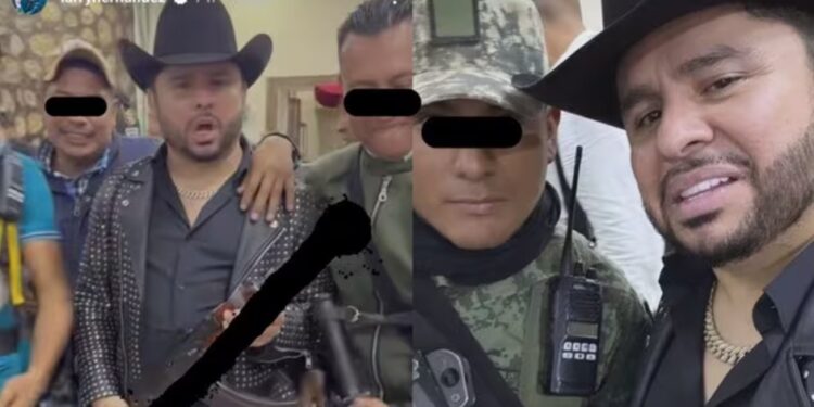 En las historias del propio Larry Hernández se ve a los hombres con armas abrazar al cantante, tomándose fotos uno tras otro y tomando Whisky directo de la botella.