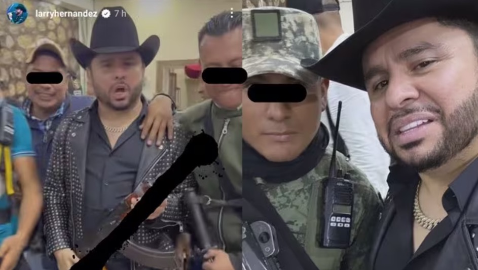 En historias en video y fotografías, Larry Hernández aparece con seis personas portando armas de grueso calibre, entre ellos se observa a al menos uno con apariencia de menor de edad.