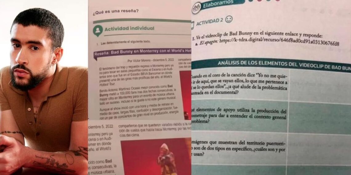 En redes sociales se dio a conocer parte del material educativo que incluye un ejercicio que tiene como objetivo enseñar a las y los pequeños a elaborar una reseña informativa. Para ello, se incluye un análisis detallado del concierto que Bad Bunny realizó en la ciudad de Monterrey, en diciembre de 2022.