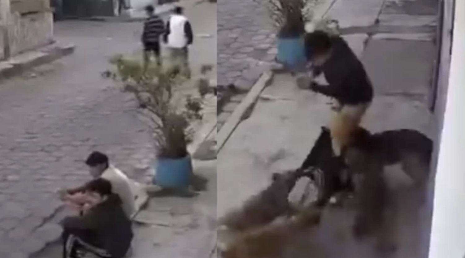 En el video circulado en redes se observa cómo los canes comienzan a morder y estirar el pantalón de la víctima hasta bajárselo a los pies.