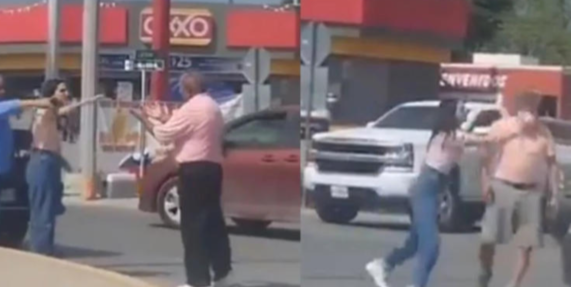 Ambas partes estuvieron reclamando hasta que el adulto mayor propinó un golpe al rostro al conductor de la camioneta gris, lo que desató el coraje de la joven que intentó defenderlo.