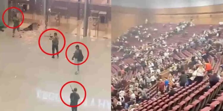En uno de los peores ataques de este tipo en Rusia en años, al menos cinco sujetos aparecieron en videos disparando repetidamente contra civiles que gritaban y se escondían en las butacas en la sala de conciertos mientras el grupo de rock de la era soviética “Picnic” estaba a punto de actuar.