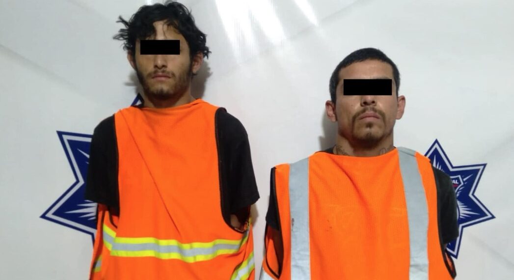 Elementos de la Secretaría de Seguridad Pública Municipal arrestaron a Jorge H. B. y Erick M. A., por su presunta responsabilidad en la comisión de delitos contra la ley federal de armas de fuego y explosivos.