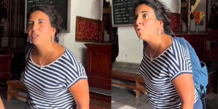 El incidente ocurrió cuando un grupo de turistas intentaba visitar la iglesia y una mujer se abalanzó sobre ellos, criticando la vestimenta de una de las jóvenes. “Esta es mi iglesia y no pueden entrar con shorts… incita a la sexualidad. Hay que tener un respeto, así no hay que vestir, aquí no es libertinaje, así no se entra a la iglesia, por respeto a Dios”, exclamó la mujer, visiblemente molesta.