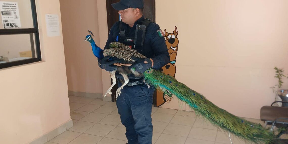 Resguarda SSPM a pavorreal en la vía pública; lo traslada al RAMM