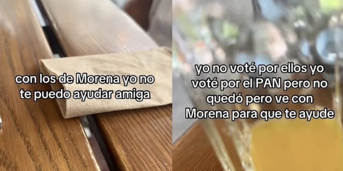 La polémica llegó a ser más evidente cuando un video subido a TikTok mostró a una mujer en un restaurante de Polanco que le negaba ayuda a una mujer que se acercó a vender algo a su mesa, argumentando que debería pedir ayuda a Morena. En el video se escucha claramente a la clienta diciendo: “Ve con Morena, para que te ayude. Yo no te puedo ayudar, amiga, ve con ellos, tú votaste por ellos”. La otra mujer, visiblemente sorprendida, respondió: “Yo no voté por ellos, yo voté por el PAN pero no quedó”. A pesar de esto, la clienta insistió en que pidiera ayuda a Morena, argumentando que se debía exigir al partido por el que votaron.