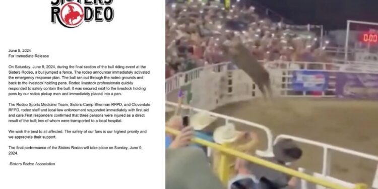 En un comunicado, la Asociación de Sisters Rodeo confirmó que tres personas resultaron lesionadas, dos de las cuales fueron hospitalizadas. En dicho documento también afirman que inmediatamente activaron los protocolos necesarios para contener al toro.