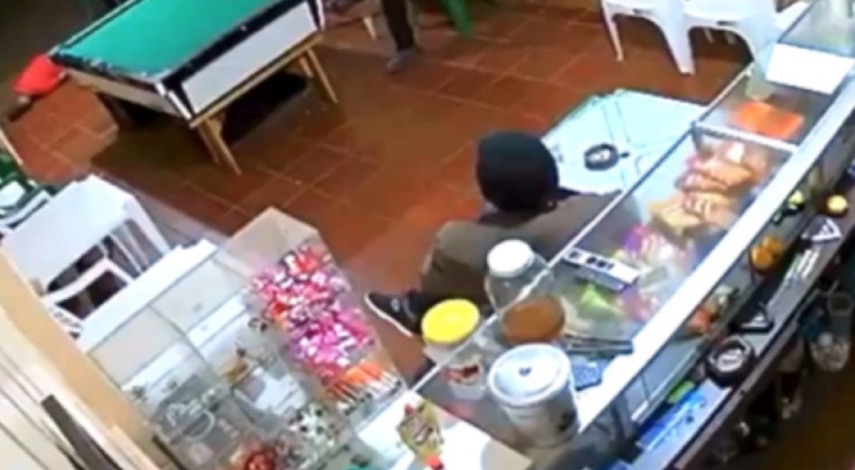 En las grabaciones de seguridad, se puede ver a un viejito con gorra permaneciendo impávido y a otro anciano calvo que, tras ver a su amigo en el suelo, continuó sirviéndose una copa sin inmutarse. Sintiendo la traición de sus amigos, sacó su pistola y comenzó a disparar, primero hacia el anciano calvo, quien milagrosamente no fue alcanzado y buscó refugio gateando hacia el interior del bar.