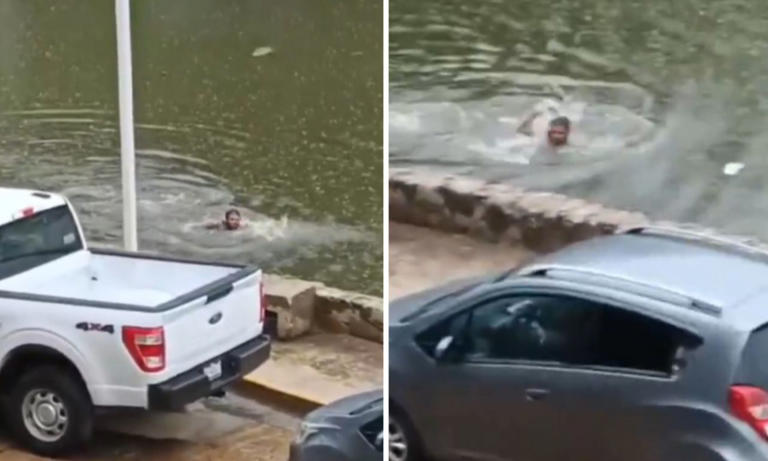 Un video capturado por un testigo muestra el momento crítico en el que uno de los cocodrilos se acerca peligrosamente al hombre. En las imágenes, se observa cómo el reptil se aproxima lentamente, preparando un ataque. Sin embargo, el individuo logró salir del agua sin sufrir ningún daño.