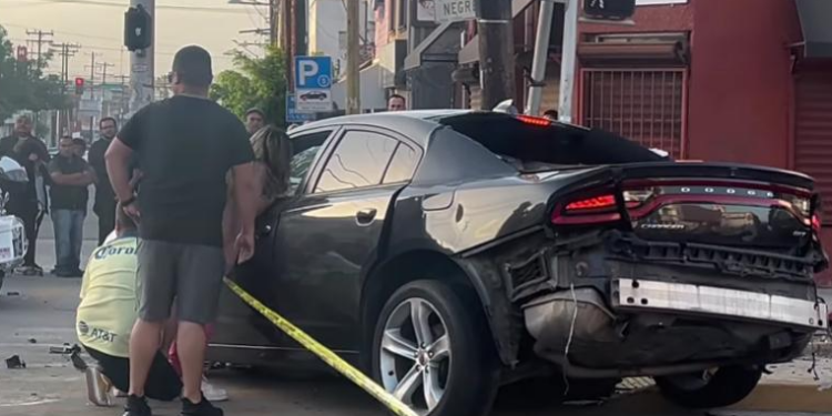 De acuerdo con testigos, el conductor de un Dodge Charger con placas de California conducía a exceso de velocidad y se pasó el alto del semáforo, por lo que ocasionó un choque contra un auto Nissan Sentra.