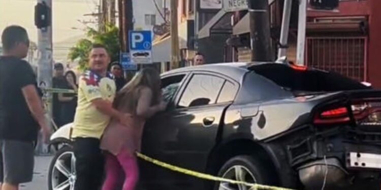 De acuerdo con testigos, el conductor de un Dodge Charger con placas de California conducía a exceso de velocidad y se pasó el alto del semáforo, por lo que ocasionó un choque contra un auto Nissan Sentra.