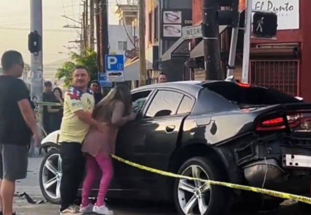 De acuerdo con testigos, el conductor de un Dodge Charger con placas de California conducía a exceso de velocidad y se pasó el alto del semáforo, por lo que ocasionó un choque contra un auto Nissan Sentra.