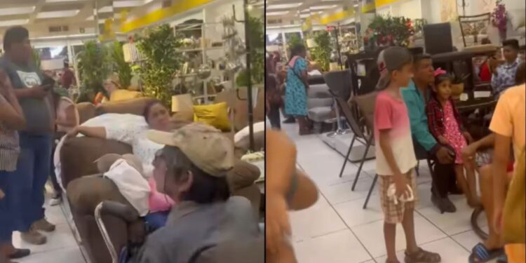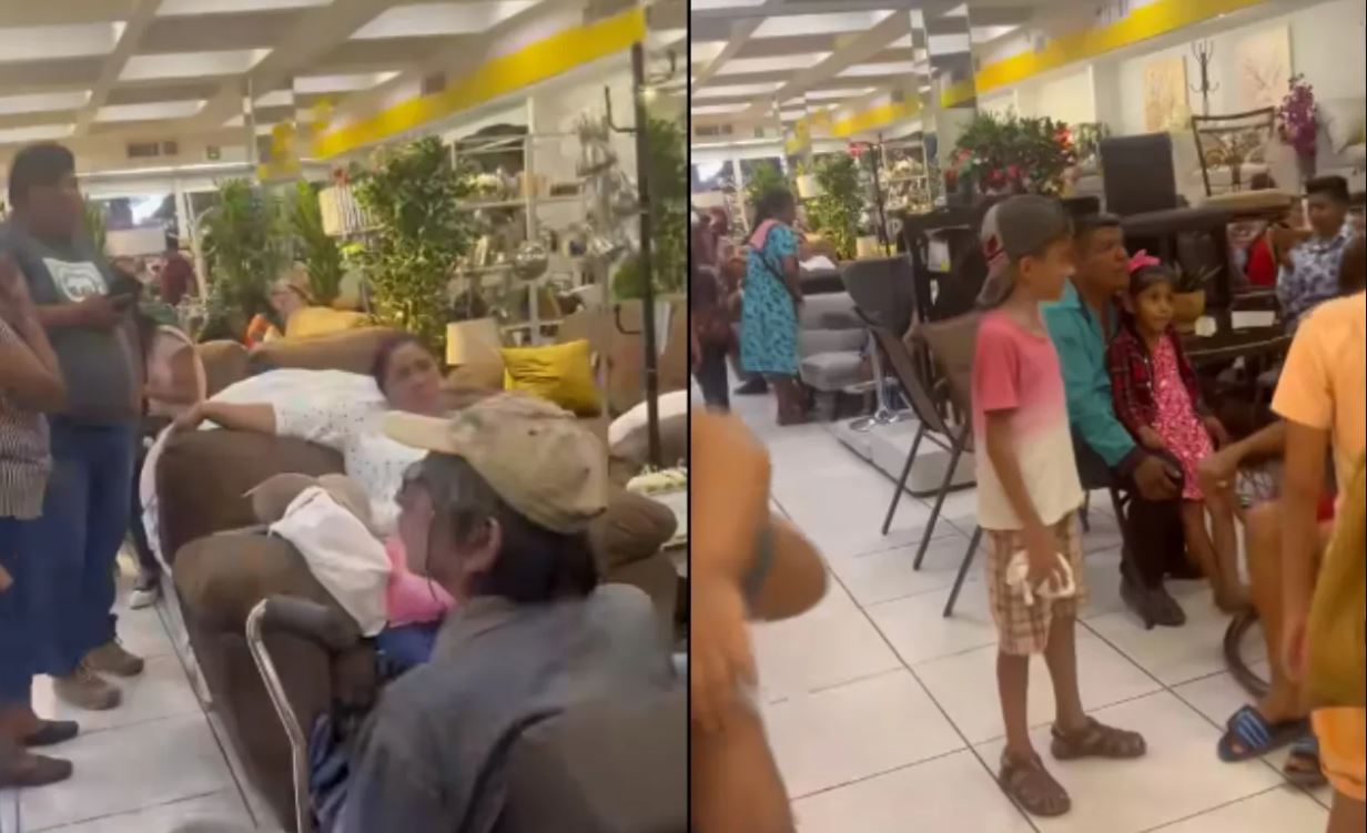Como resultado, una tienda Coppel se llenó de familias que aprovecharon las salas de exhibición y otros muebles para descansar del insoportable calor exterior.