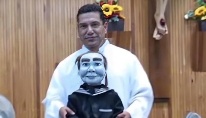 Saltillo. – Un sacerdote de la ciudad de Saltillo, Coahuila, causó controversia por llevar a sus misas a un muñeco de ventrílocuo que le puso un toque terrorífico a sus ceremonias.