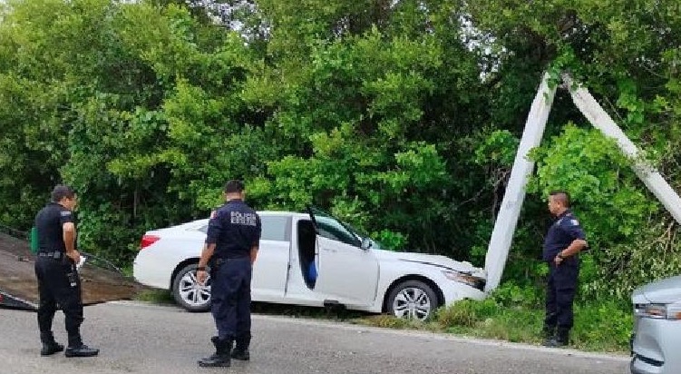Patrón Laviada perdió el control del volante y se salió del camino, estrellándose contra un poste de la Comisión Federal de Electricidad. El incidente no pasó a mayores.