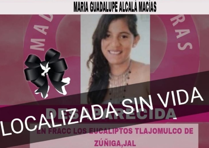 La señora María del Rosario Macías buscó a su hija María Guadalupe Alcalá Macías desde que desapareció el 25 de marzo del 2016 en el fraccionamiento Los Eucaliptos ubicado en el municipio de Tlajomulco de Zúñiga en el estado de Jalisco. Ahora, tras ocho años, la localizó sin vida.