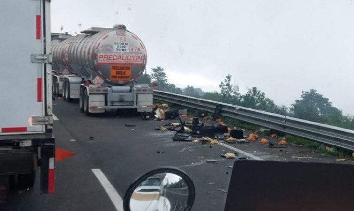 Este miércoles 17 de julio, se registró un trágico accidente en la autopista Perote-Xalapa, específicamente en El Fresno, en Veracruz, en el que está involucrado un camión cargado de pollos, el cual volcó en la vía y se incendió.