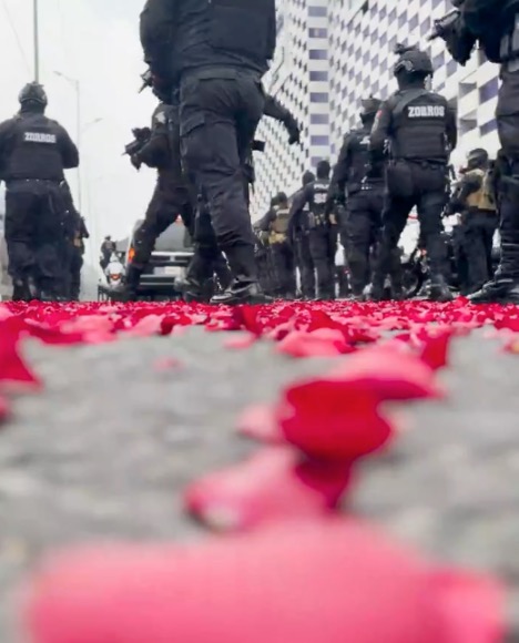 Helicóptero arroja pétalos de rosas para despedir a mando asesinado