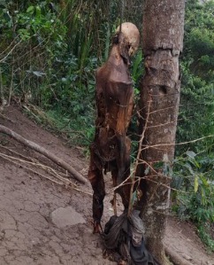 Decidió acercarse y fue cuando se dio cuenta de que la parte pequeña del árbol en realidad era un cadáver de un hombre colgado en avanzado estado de descomposición y siendo “absorbido” por el árbol, lo cuál da a entender que el cuerpo ya tenía más de un año en ese lugar.