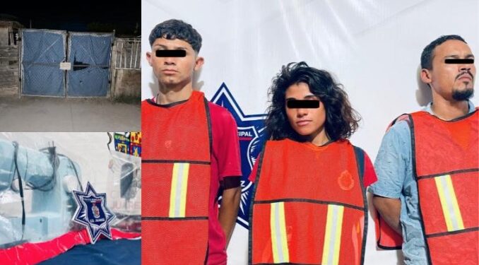 Elementos de la Secretaría de Seguridad Pública Municipal arrestaron a Alan Ulises E. A., Andrea Guadalupe A. G. y David S. G., por su presunta responsabilidad en la comisión del delito de robo a casa habitación.