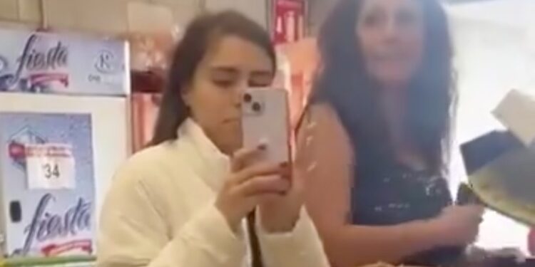 “Ahorita voy a regresar, p3nd3ja”, dice la joven, mientras que la otra mujer señala que “no sabes ni con quién te metes”. Finalmente, la joven señala a la cajera que salga para que vea “la pistola” que tiene, sin embargo, ahí termina el video.