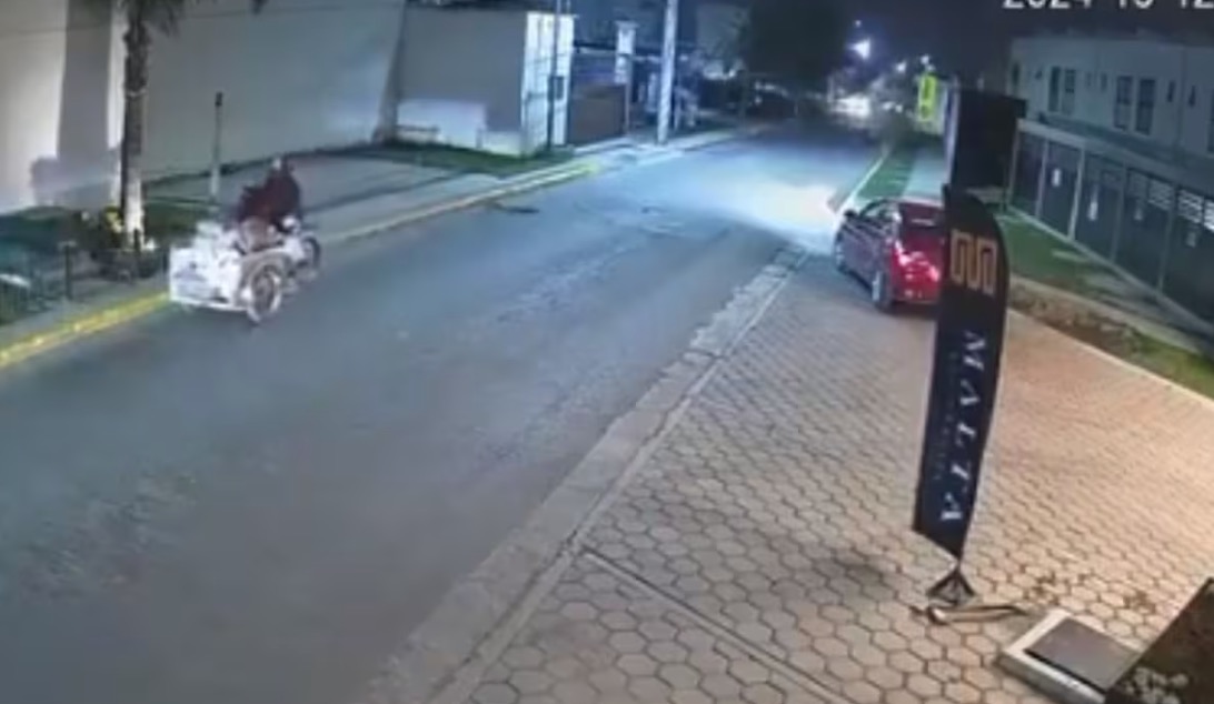 El incidente, que quedó registrado en una cámara de vigilancia del fraccionamiento Malta Residencial, ocurrió en la calle Prolongación San Lorenzo, cerca del Periférico Ecológico.