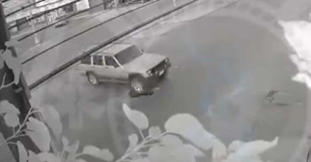 Cámara de seguridad captó caida de Jeep